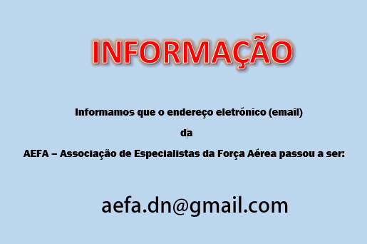 A Direção Nacional apela a uma forte participação de forma a permitir que nos encontremos todos num convívio sadio e de amizade entre todos quantos tivemos a honra e o privilégio de ter servido a Força Aérea Portuguesa como Especialistas e contribuir para uma AEFA renovada e coesa.