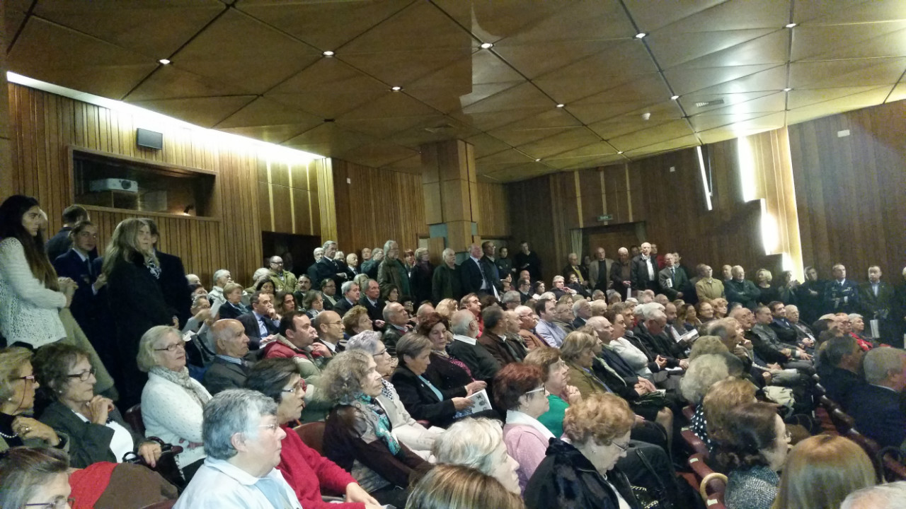 Auditório repleto com imensos convidados de pé, repleto como nunca antes visto para apresentação de um livro, uma cerimónia bonita, silêncio absoluto, concentração e respeito, olhos brilhantes de emoção.
